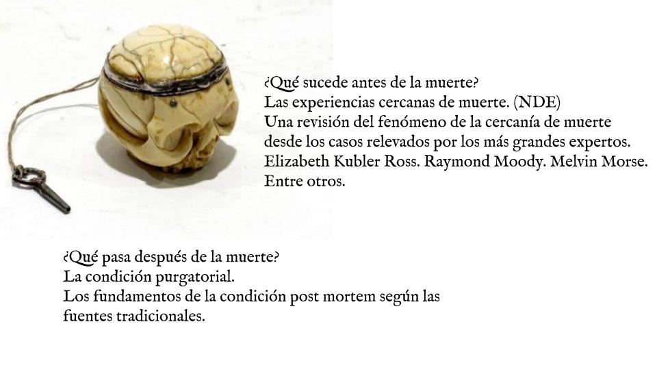 Exploraremos  los casos de experiencia cercana de muerte (NDE) en los que se registra un contacto angélico a partir de las investigaciones más prestigiosas, como las de Raymond Moody, Elizabeth Kubler Ross, Maurice Rawling, Keneth Ring y Melvin Moorse. La tanatología infantil -los ángeles que asisten a los niños en la hora de la muerte-. La evolución de la figura del ángel y su rol protagónico  en el crecimiento espiritual de los practicantes hasta convertirse en la operación central de la magia ceremonial occidental (Ritual de Conocimiento y Conversación con el Santo Ángel Guardián) y el símbolo más acabado de la Operación Solar.
